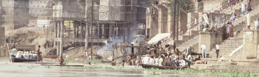 1980年代の一人旅のときは、ベナレスのガートから水草にのって流れる髑髏や、水草の間に浮かぶ遺体が見えた。新型コロナウィルスが猛威を振るったときは、ガンジス河には遺体がどんどん流れ、岸辺に漂着したそうである。