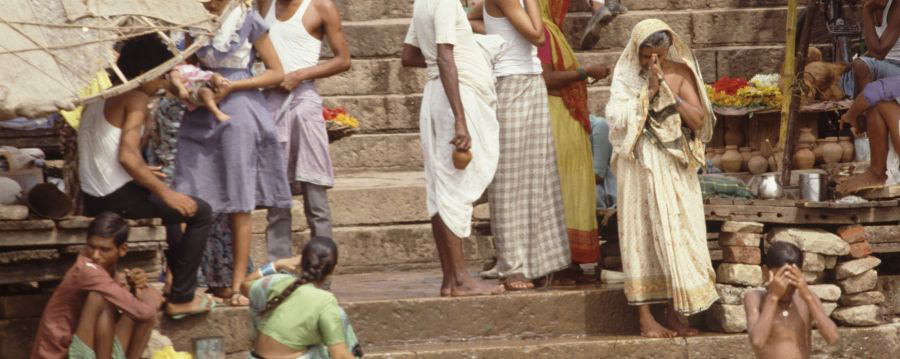バラナシガートのプージャ(祈り)は、大掛かりな真言密教の護摩のような催しで、わたしの趣味ではなかった。1980年代中頃のバラナシのガートで見た祈りの姿はこのような雰囲気があった。