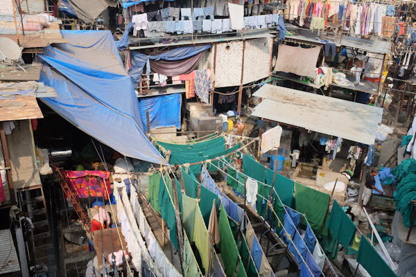 ムンバイでは巨大な手作業洗濯集団の作業場を見学した。すっかり観光のアイテムにとり入れられ、道路わきの見学スペースから見ることができる。